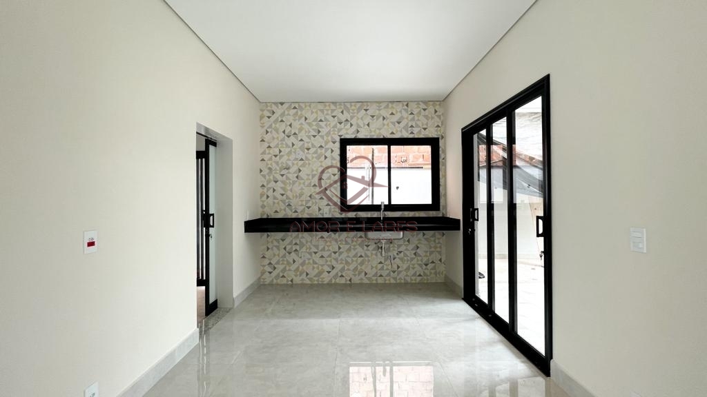 Casa em condomínio fechado à venda com 3 dormitórios com suítes, sendo 1 com closet, lavabo, ampla sala integrada com a cozinha, piso em porcelanato em todos os ambientes, espaço gourmet com churrasqueira, lavanderia e 4 vagas de garagem sendo 2 cobertas.