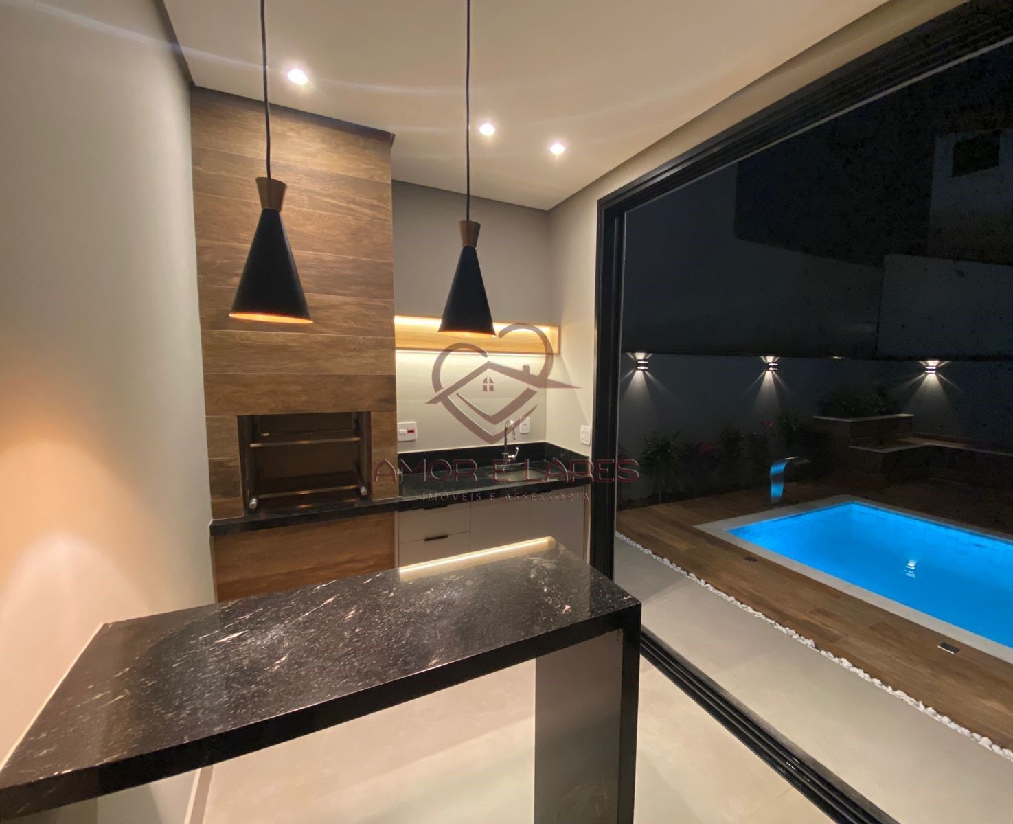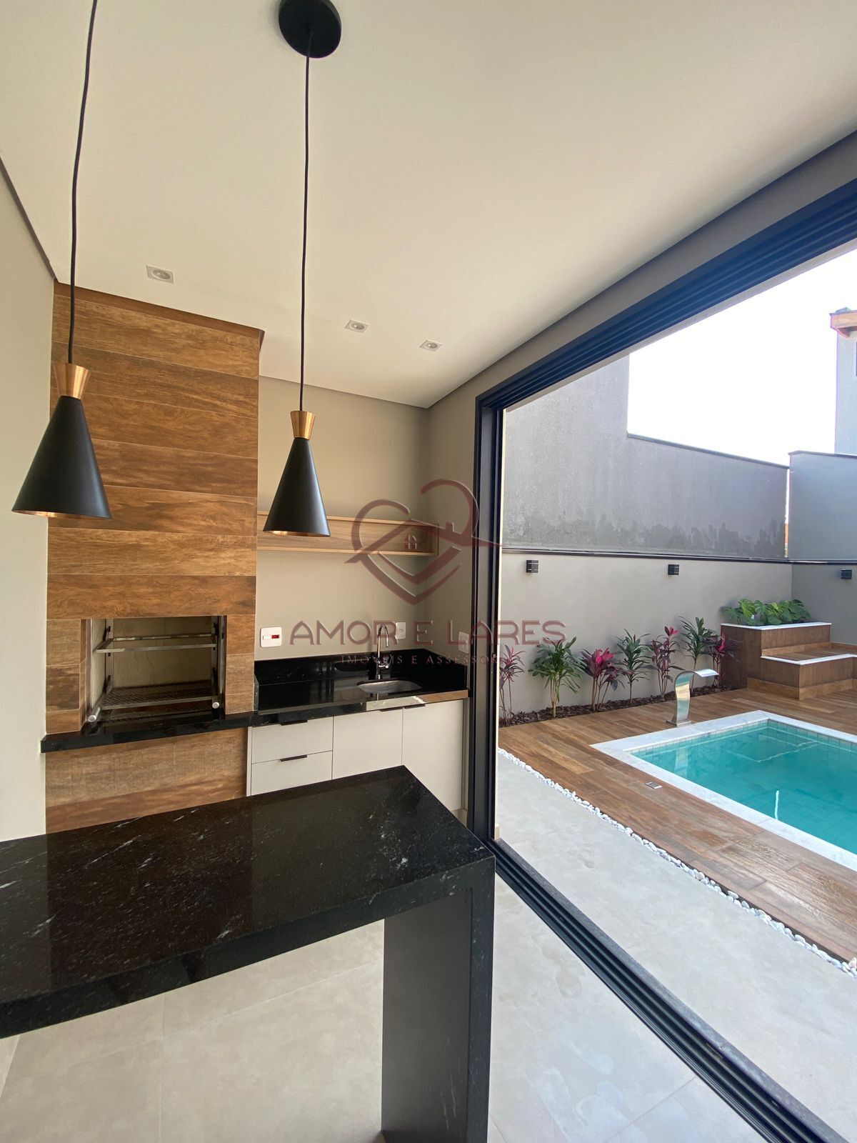 Linda casa à venda com 3 suítes revestidas com Portinari, incluindo uma suíte master com closet, possui 5 banheiros ao total. Oferece lazer completo com piscina e uma área gourmet equipada. Conta com 2 vagas de garagem e está preparada para ar-condicionado, aquecimento solar, energia fotovoltaica e tomada para carro elétrico. Os acabamentos são incríveis, com granitos, iluminação indireta, pisos Portinari, e cozinha completa. Persianas automatizadas nas suítes garantem o seu conforto.