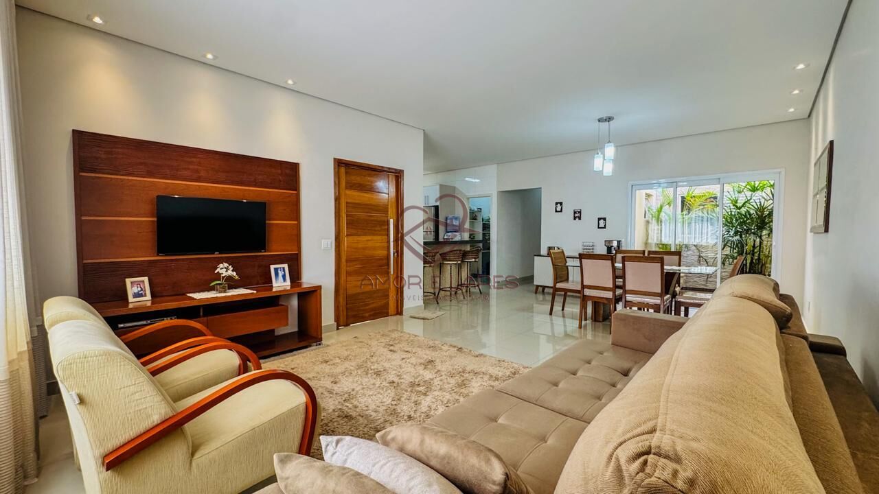Casa térrea com 3 dormitórios sendo 2 suítes, uma delas com closet e ar-condicionado instalado. Conta ainda com sala de estar integrada à sala de jantar, cozinha gourmet equipada com máquina de lavar louça, além de despensa para facilitar o dia a dia.