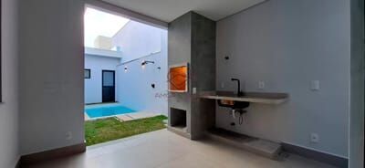 Casa térrea à venda com 3 suítes, sendo 1 master com closet, sendo 4 banheiros. Possui sala ampla integrada à cozinha gourmet e à área de churrasqueira, ótima para receber amigos e família.