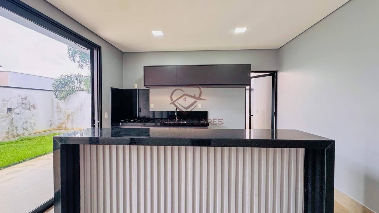 O hall de entrada conta com porta pivotante e fechadura digital. A sala de estar e jantar possui pé direito duplo e se integra à cozinha planejada, equipada com cooktop e forno elétrico.